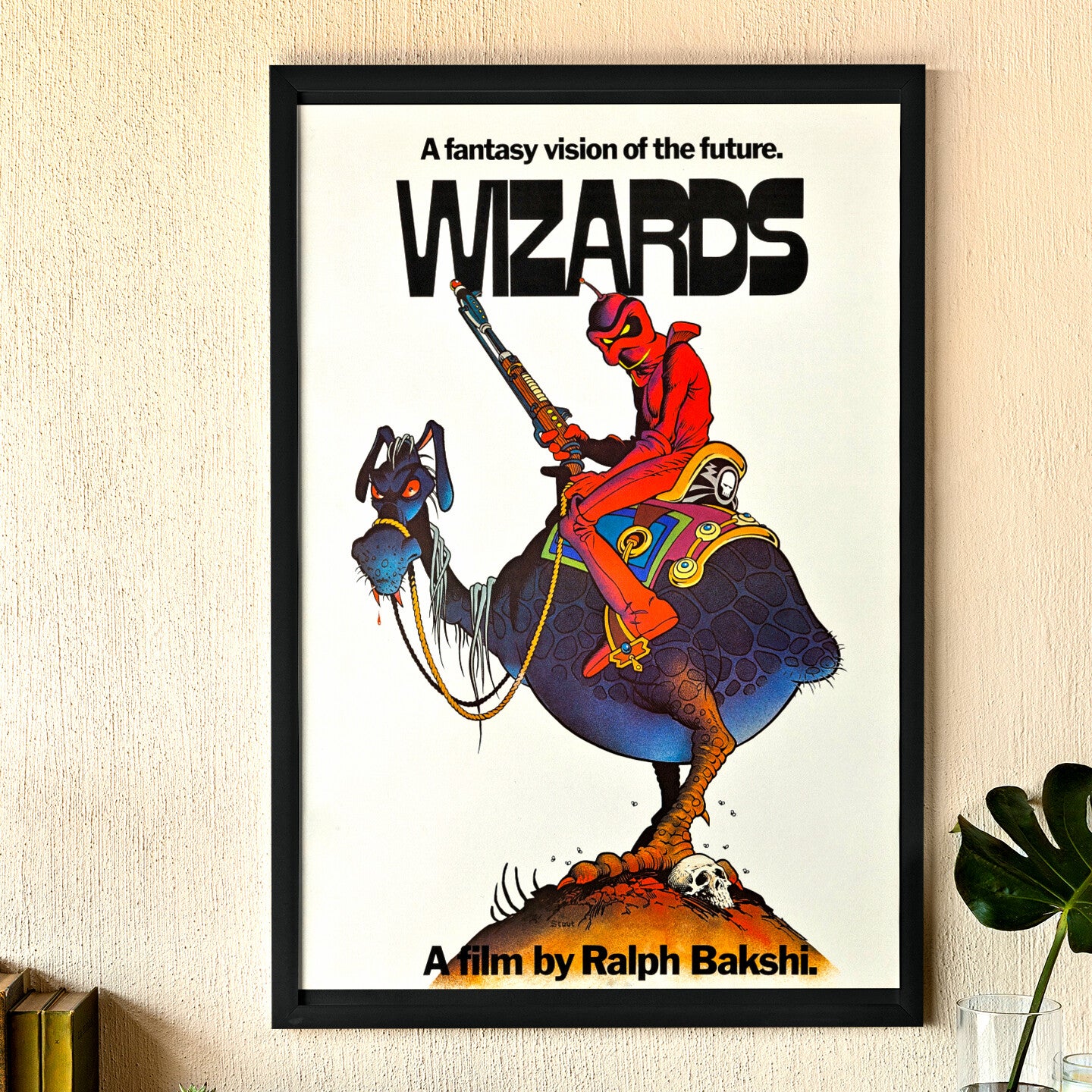 The eye-catching 11" x 17" glossy art print from the visionary film 'Wizards' by Ralph Bakshi captures the essence of the groundbreaking animated fantasy turned cult film classic. It features an iconic image by renowned illustrator William Stout. Perfect for fans of classic animation, science fiction, and fantasy art, the high-quality poster print makes for a compelling retro-futuristic design for home theaters, media rooms, or any space that celebrates the artistry of animation.