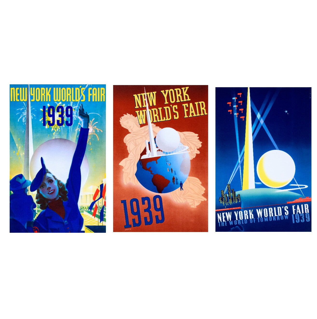 - Vintage Collection: Set of 3 authentic reproduction posters celebrating the iconic 1939 New York World's Fair, featuring classic Art Deco design elements and vibrant period-accurate colors