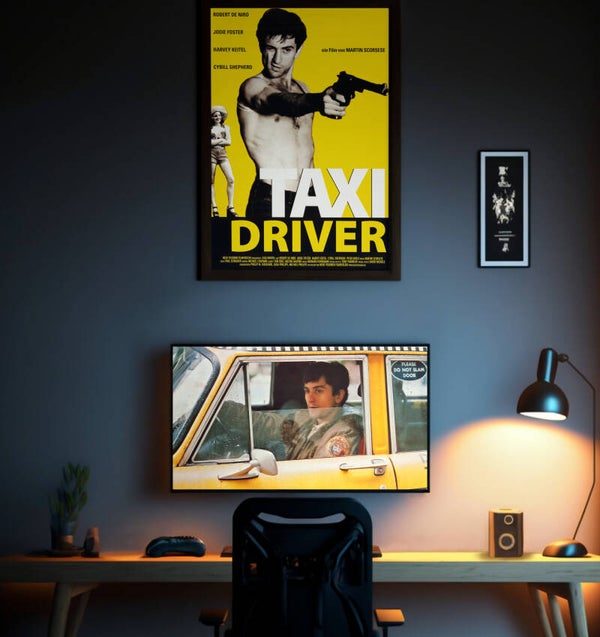 - ICONIC FILM POSTER: Features the classic 'Taxi Driver' movie poster design with striking yellow background and bold typography from Martin Scorsese's legendary 1976 film