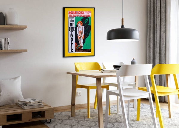 - Vintage Movie Poster Reproduction: Features authentic 1930s-era artwork from 'The Dope Traffic' film showing at the Moulin Rouge Theatre, capturing the dramatic style of early cinema advertising